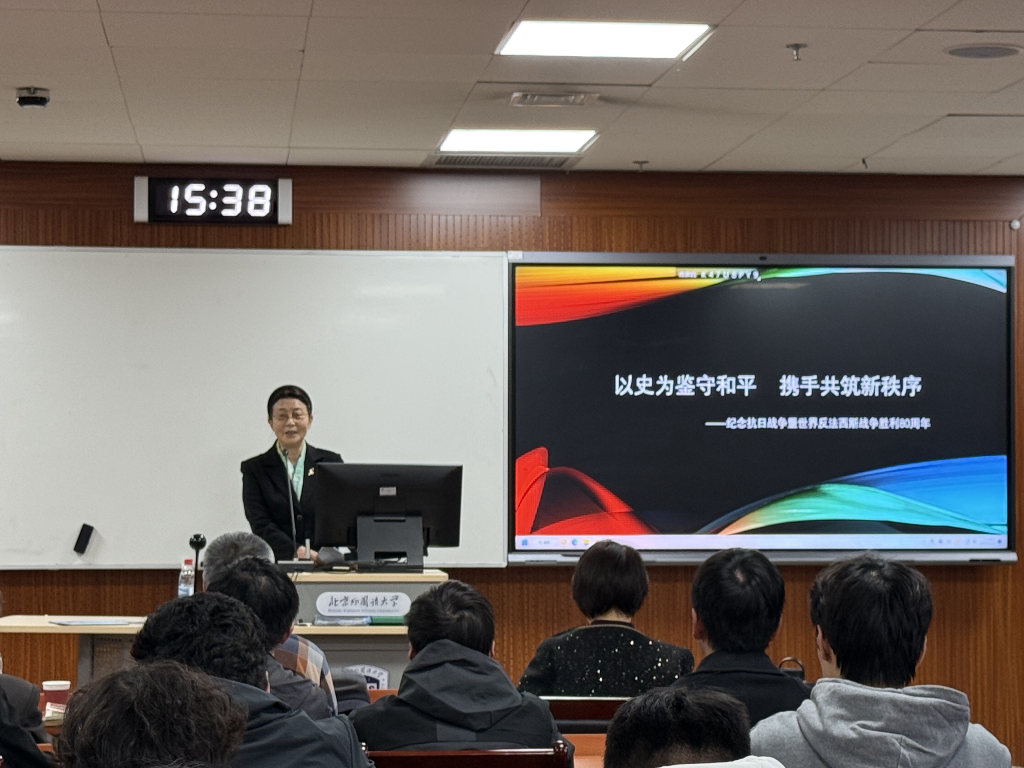 为深切缅怀革命先烈,传承红色基因,引导青年学子铭记历史、勇担使命,11月12日下午,信科学院于国际大厦417教室隆重举办“铭记历史 赓续血脉 吾辈自强”——纪念中国人民抗日战争暨世界反法西斯战争胜利80周年报告会。学院党总支副书记刘玉华老师出席会议,学院全体大一学生、入党积极分子及党员代表参加活动。报告会由裴玉芳、汪玉林、吕才三位老师担任主讲,刘玉华老师主持。